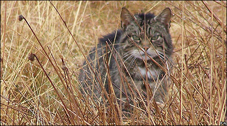 Wildcats look like large muscular tabbies, but can be distinguished by their rough coat with distinctive tiger stripe markings, thick tail with black rings and a black stripe along the back extending on to the tail. In Scotland there are thought to be about 400 pure wildcats and 3,500.
