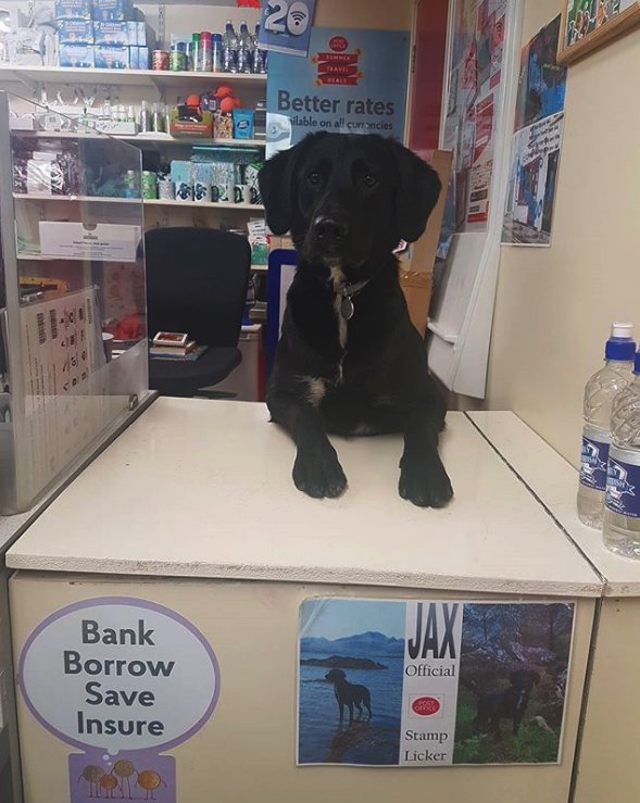 ”Jax absolutely loves it” Ray told one newsletter ”He’ll actually lick your stamps” and so with this dogs new found passion in Stamp Licking he became the Official Stamp Licker of this post office and the locals love it.